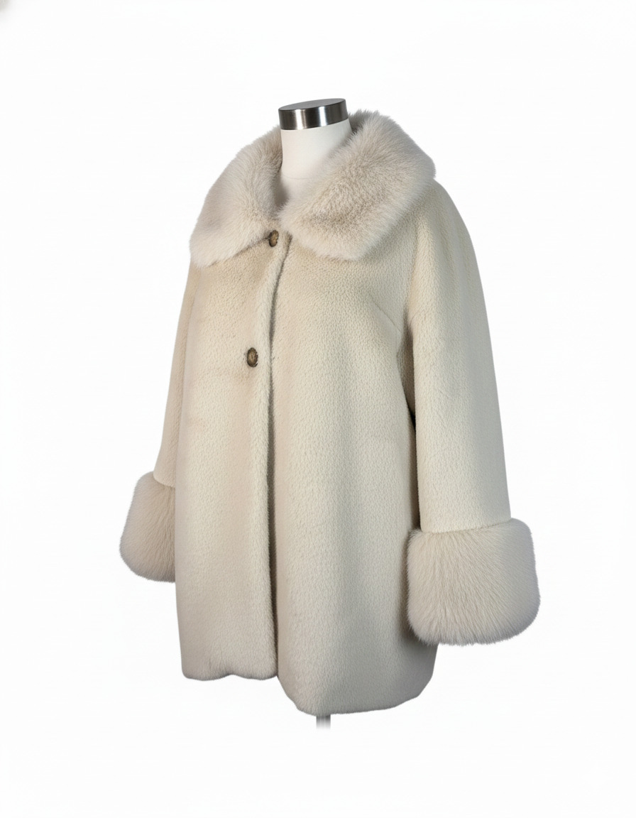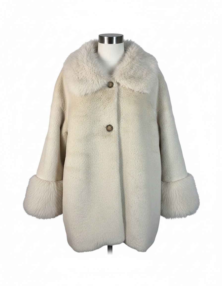 Abrigo Oslo beige de pelo sintético, elegante y cálido para cualquier ocasión.