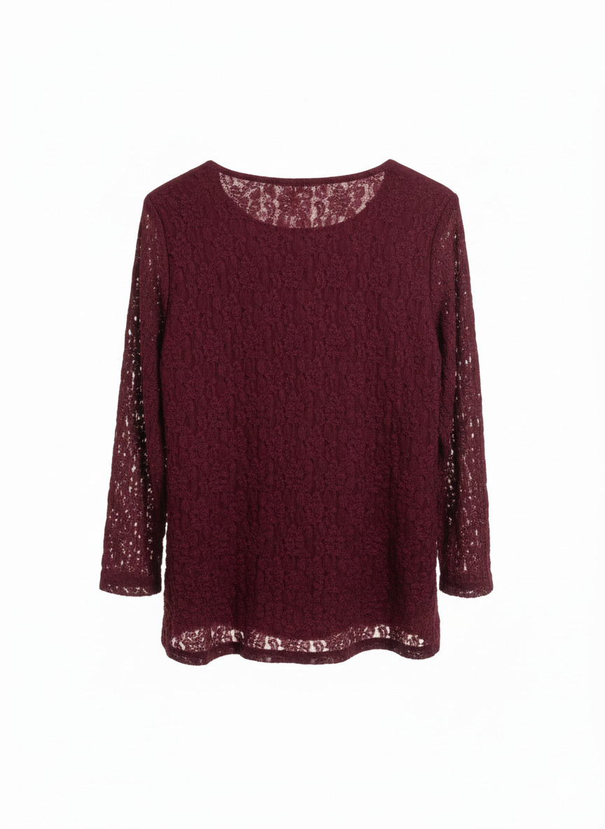 🌸 Blusa Blonda – Elegancia fluida en color burdeos