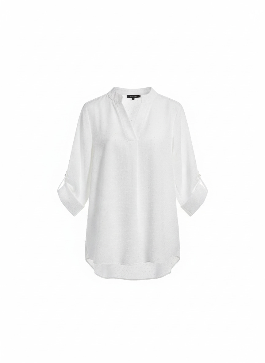 Blusa blanca con tejido de plumeti, elegante y cómoda, perfecta para looks sofisticados.