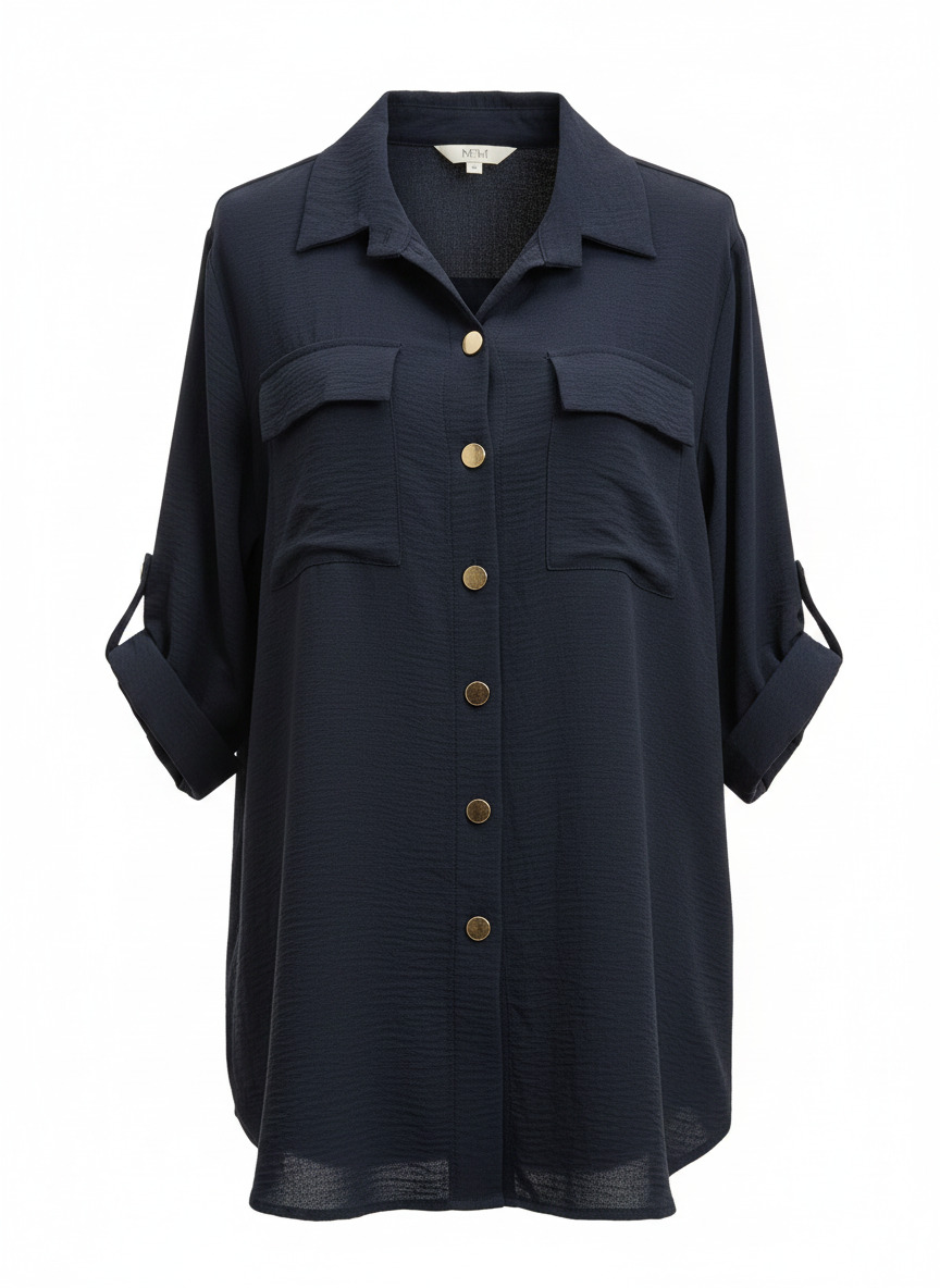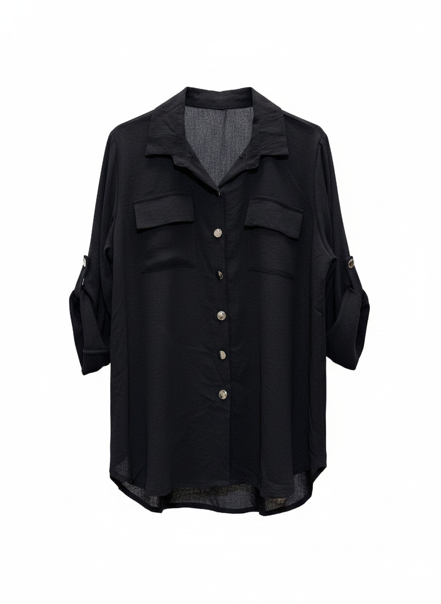 Camisa clásica y cómoda, disponible en azul marino y negro, perfecta para looks casuales o formales.