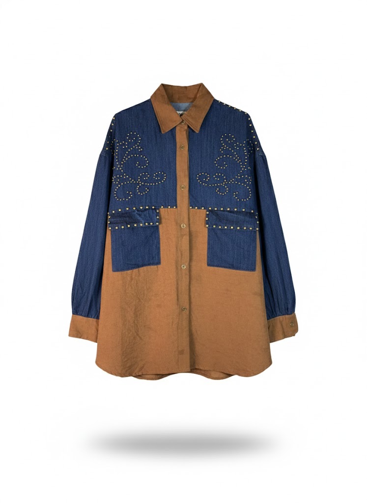 La Camisa Oeste es una prenda con personalidad, perfecta para quienes aman el estilo denim con un toque especial. Incorpora detalles en ante y tachuelas decorativas, que aportan un aire moderno y western ideal para looks casuales con carácter.