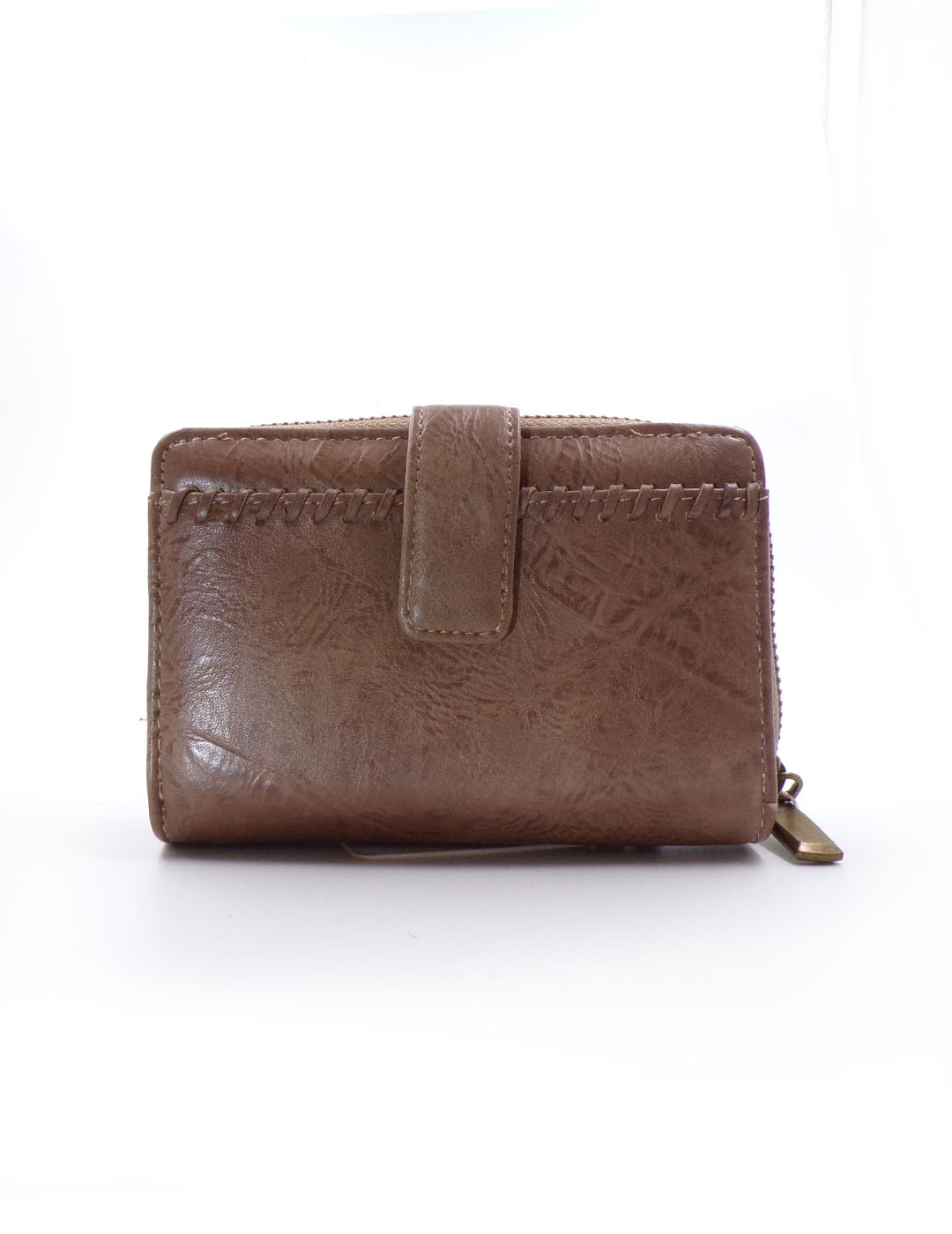 Monedero/cartera de piel con gran capacidad, disponible en camel y beige, práctico y elegante.