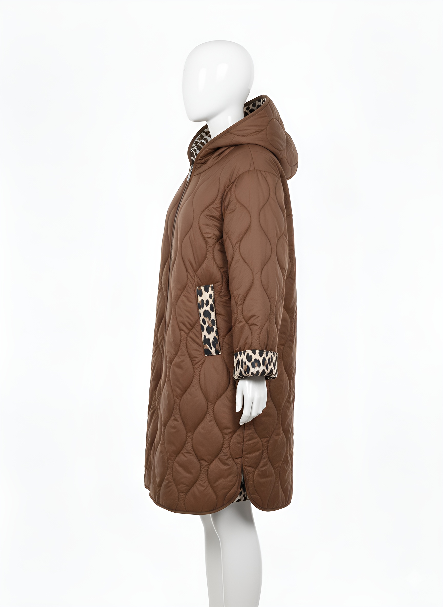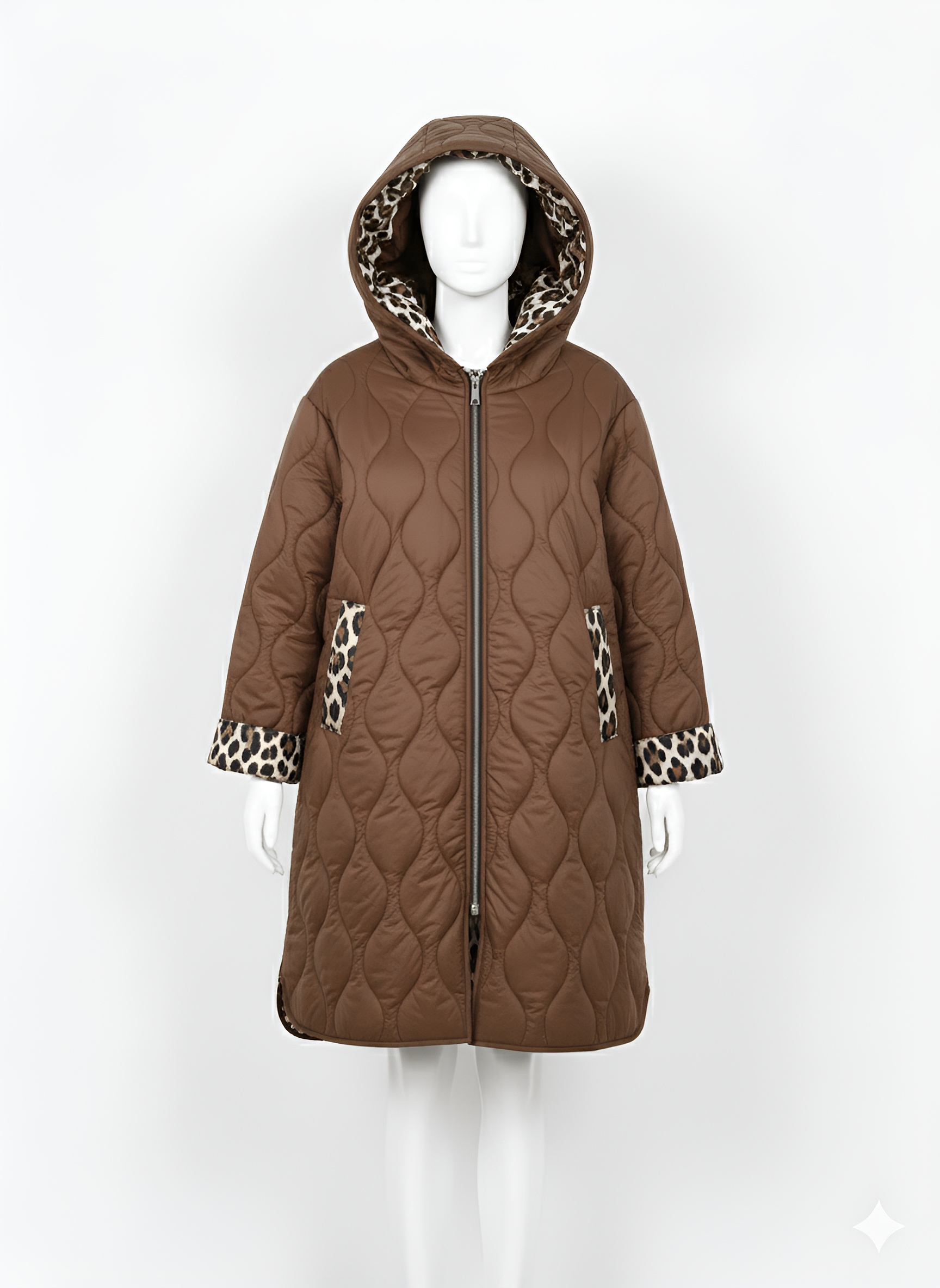 Descubre el abrigo que une funcionalidad y diseño con nuestro Pluma Savana. Su acabado en marrón por fuera y forro de estampado leopardo en el interior aporta un toque moderno y atrevido, ideal para mantenerte abrigada con estilo hasta la rodilla.