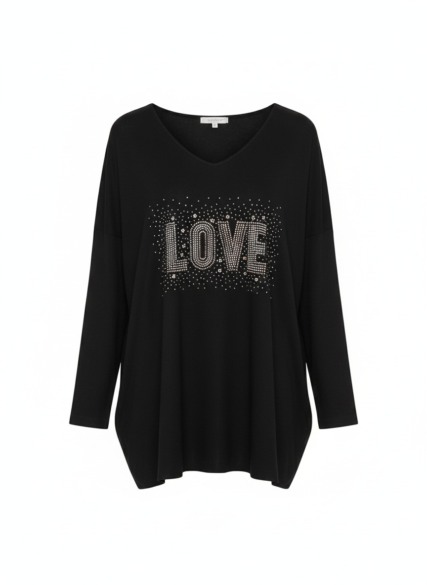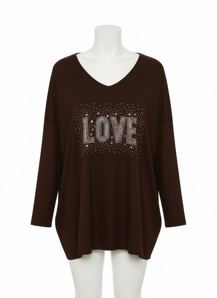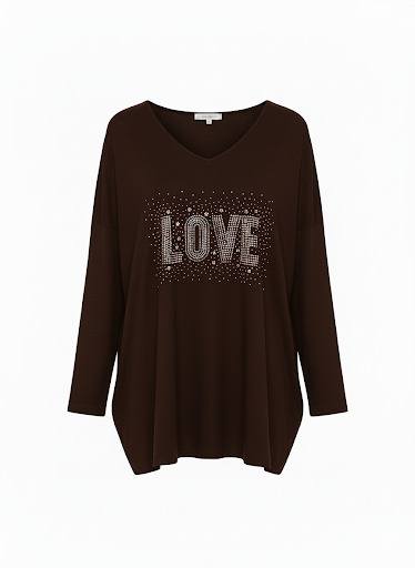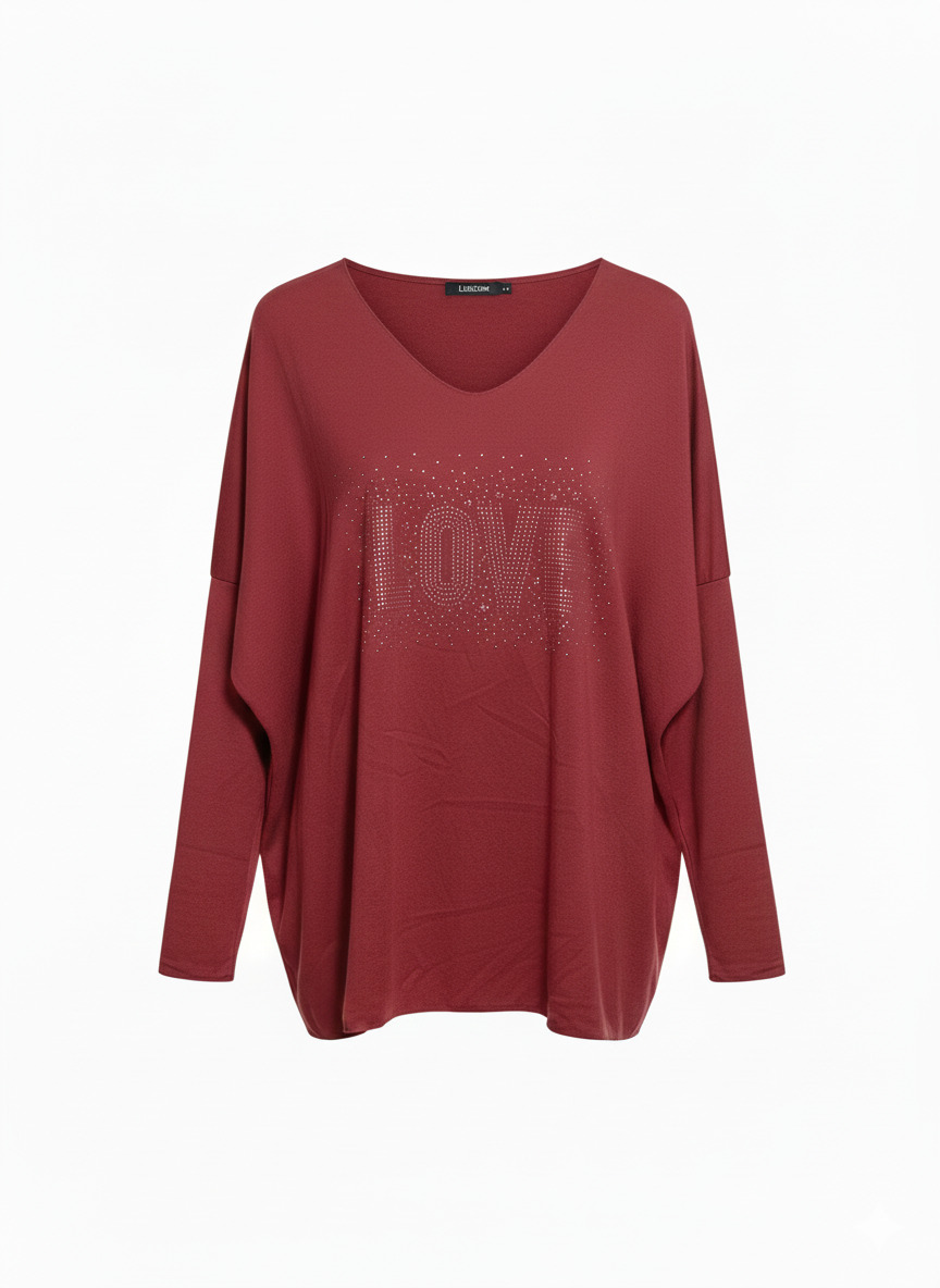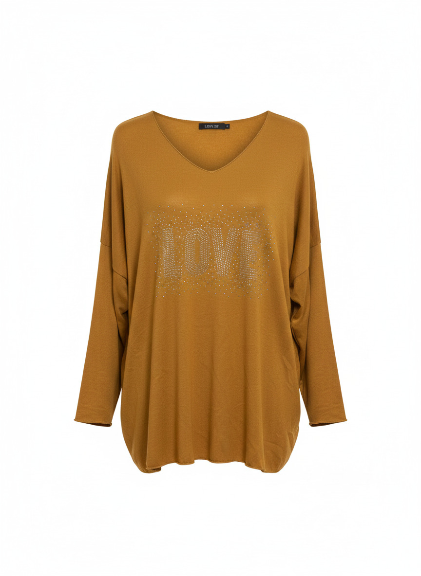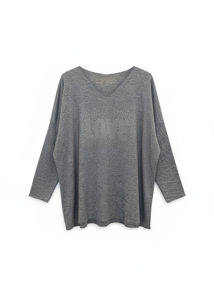 El Suéter Love es una prenda cómoda y elegante, perfecta para aportar un toque especial a tus looks diarios. Su cuello de pico estiliza la figura, mientras que su diseño frontal con brillos añade un detalle luminoso y sofisticado. Disponible en gran variedad de colores, es ideal para adaptarse a cualquier estilo.